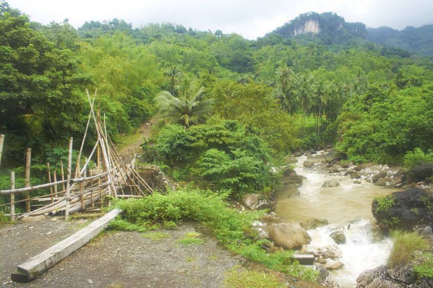Итак, через 30 минут мой кучер останавливается около хлипкого моста и говорит, что дальше мне нужно идти пешком, тут рядом. Ну, рядом так рядом, пешком мне за радость пройти. Ссаживаюсь с байка и направляюсь к мосту, от которого до водопада минут пятнадцать максимум, но при том условии, что знаешь дорогу. Лично я блуждал намного дольше, в первый раз за все путешествие не сумевши самостоятельно найти дорогу. Вроде слышишь шум водопада, а найти его не можешь.