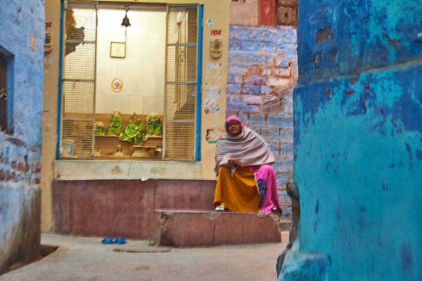 Итак Джодхпур. Мне говорили, это «синий город» и ожидал увидеть город, где нет ничего, кроме синего. Я ошибался и был по началу разочарован. Правда сейчас, просматривая фотографии, вижу только синие оттенки, видимо, так хотел увидеть синий город, что нашел все синие стены в Джодхпуре и сфотографировал их.