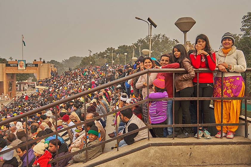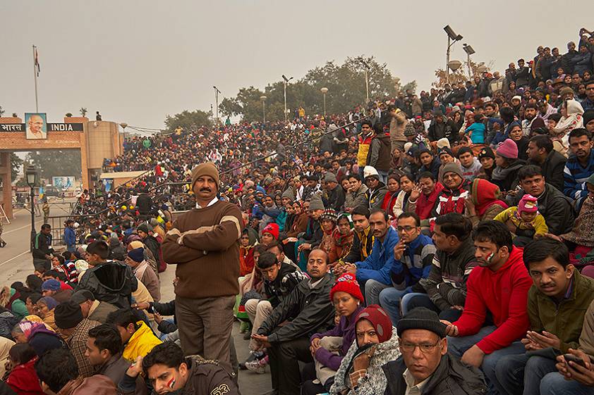 Возможно, граница между Пакистаном и Индией одно из самых необычных мест в Азии. Казалось бы, два государства на протяжении многих лет находящиеся в состоянии военного конфликта, пару месяцев назад здесь был теракт, погибли люди, тем не менее, это место где ежедневно устраивается настоящее шоу. Представьте, по пути к границе играет музыка из «миллионера из трущоб», люди в военной форме носят огромные ярко-красные шапки, время от времени включают музыку, народ высыпает на дорогу и начинает отплясывать, тогда как стадион заходится овациями. И это все непосредственно на границе!!!