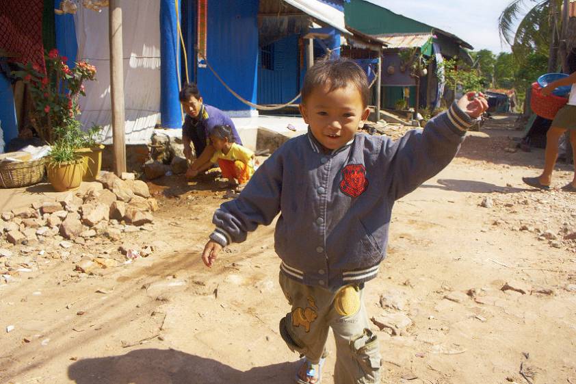 Интереснее было, как уже сказал, за рекой. Здесь можно было не только поймать удачный кадр, но и понять реальное отношение камбоджийцев к иностранцам. Так вот, оно самое что ни на есть положительное. Не то чтобы все тебе машут, улыбаются, радуются твоему приходу, как это было практически везде на Филиппинах. Нет, здесь очень много людей с серьезным выражением на лице, правда стоит лишь самому улыбнуться и махнуть рукой, как тут же тебе отвечают взаимностью, улыбаются и спрашивают, время от времени, как дела или куда ты идешь. Исключение только дети – они всегда кричат “Hello” и приветливо машут руками.