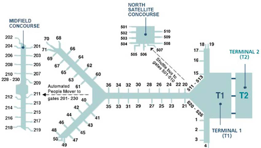 Обратите внимание, вылет всегда происходит из терминала 1, а в терминале 2 производится регистрация на рейсы.