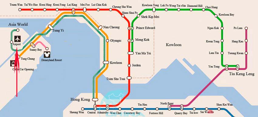 Стоимость проезда отличается. в зависимости от конечной станции прибытия. Если вы едете до Hong Kong цена 100 HKD, до станции Kowloon 90 HKD. По прибытии на станцию Hong Kong или Kowloon, как правило, далее люди добираются на метро до ближайшей станции к своему отелю и дальше пешком или на такси.