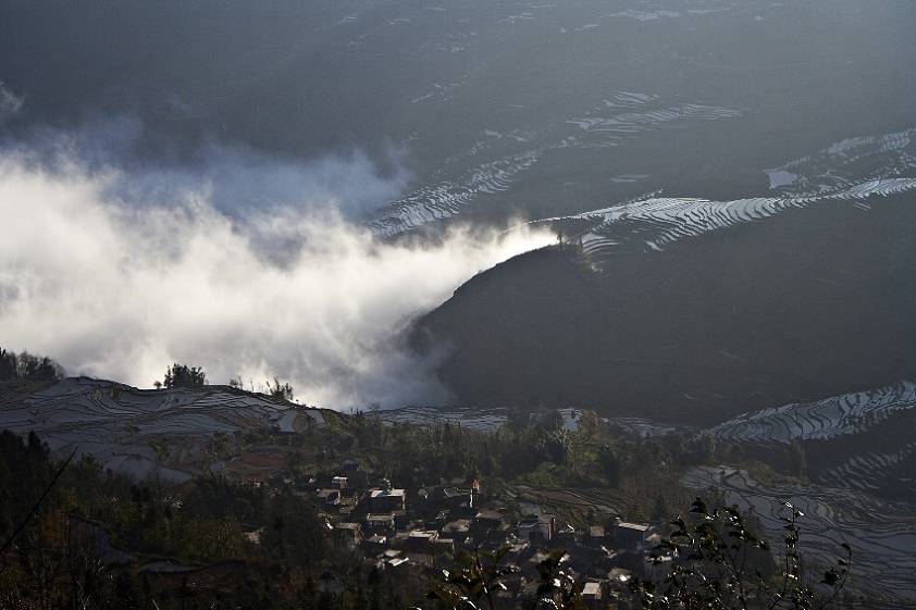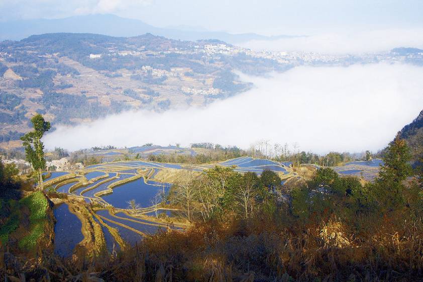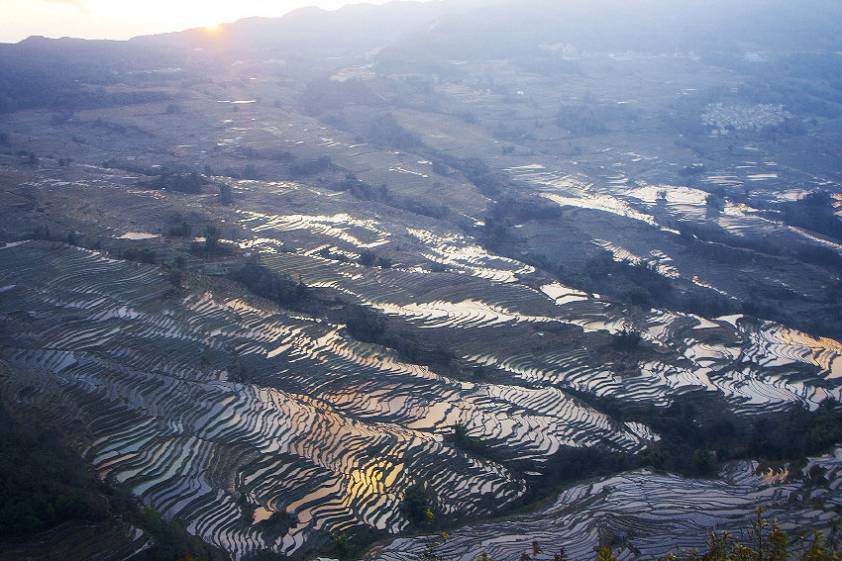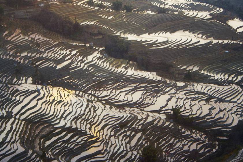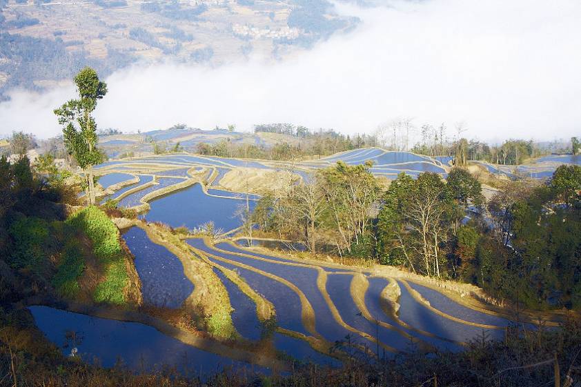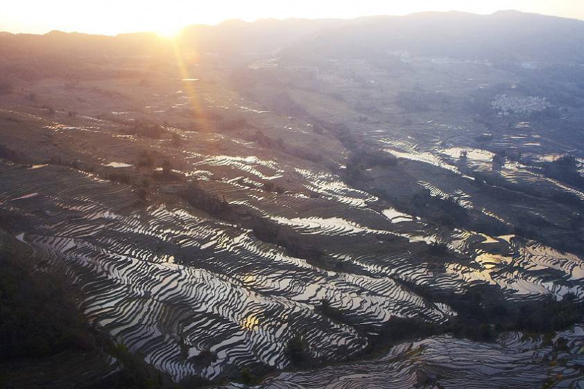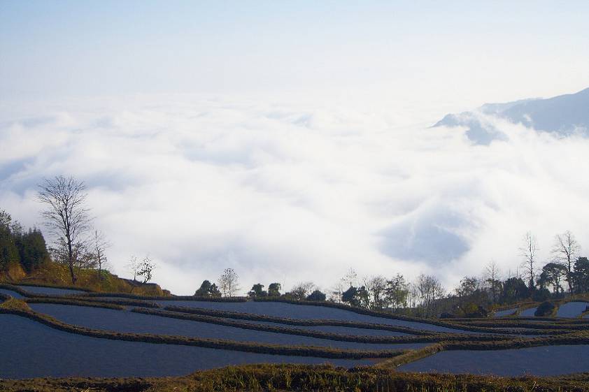 Рисовые террасы в провинции Юньнань, что на юге Китая, довольно популярная достопримечательность Китая, широко разрекламированная путеводителем Lonely Planet. Круглый год здесь можно найти любителей прекрасных фотографий из самых разных уголков планеты. Именно зимние месяцы считаются наиболее привлекательными, поскольку рисовые террасы в это время года наполнены водой и порой отражение облаков, украшенные солнечными лучами закатов и рассветов, создают ни с чем не сравнимую картину.