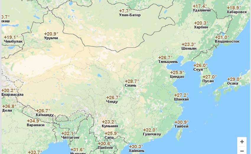 Особенно во второй половине апреля, температура воздуха на большей территории Китая значительно выше нуля. В центральной части страны +20 и чем южнее, тем планка тепла будет выше.