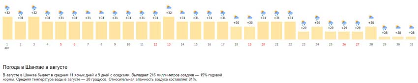 Погода в Шанхае в августе