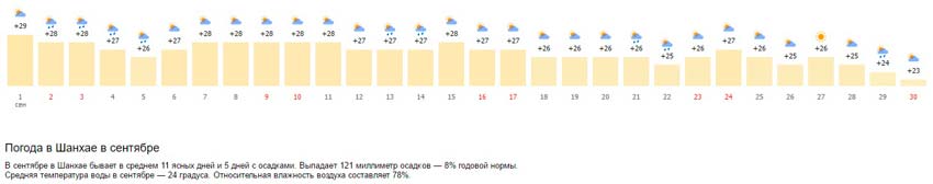 Погода в сентябре в Шанхае