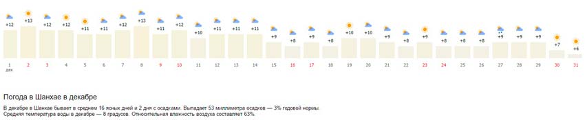 Погода Шанхай в декабре