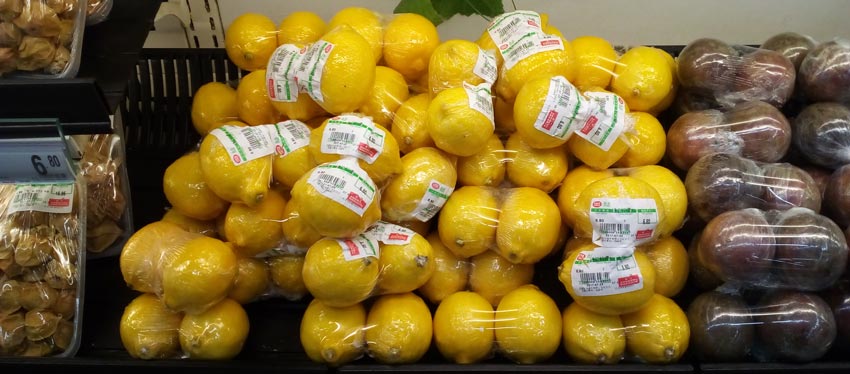 Здесь плохо видно. Цена на лимон около 7 юаней.