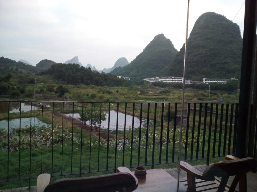 В Яншо довольно много хороших хостелов по разумным ценам. Я бы рекомендовал этот - Yangshuo Sudder Street Guesthouse. Цена за комнату на двоих была около 170 юаней за ночь. Если возьмете комнату с балконом, на утро вам будет открываться вот такой прелестный вид из окна.