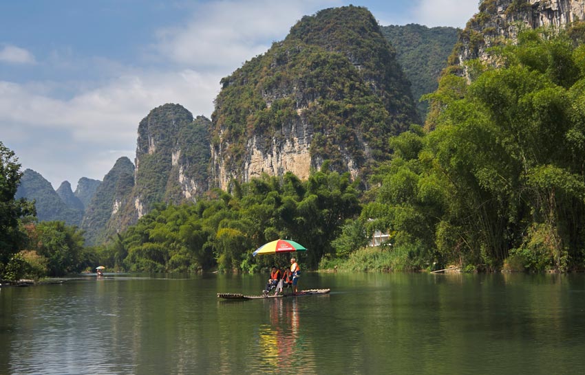 Очень рекомендую. На карте обозначено место, откуда лучше сплавляться. Будьте внимательны, поскольку есть две опции. Можно сплавиться по реке за 100 юаней с человека и за 200, зависит от продолжительности. По ошибке, брал тот вариант, что за 100 юаней с человека. В целом, не пожалел, но было бы лучше взять более дорогой. В более дорогом варианте, прогулка на двухместной лодке занимает около часа и виды вокруг очень приятные. Вы плывете по спокойной реке, вдоль знаменитых холмов Яншо и получаете удовольствие от увиденного. Сплавляетесь вы в двухместной, стилизованной под бамбук лодке, вмещающей лишь двух человек. Цена за лодку 400 юаней. Дополнительно, за 10 юаней с человека, ваши велосипеды доставят к месту причала лодки и вы сможете продолжить прогулку.