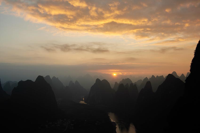 Ниже вы увидите несколько фотографий рассвета. Как добраться до этого места самостоятельно точно не скажу, мы брали экскурсию. Стоила около 100 юаней с человека. Можно выбрать, как встретить закат с обзорной площадки, так и рассвет. Мне показывали фотографии заката и меня не особо впечатлило, cкорее, это место для рассвета. Поскольку солнце не закрыто холмами, в отличии от заката, именно на рассвете можно сделать хорошие снимки. Уточните в вашем хостеле детали, вам все расскажут. Экскурсия начинается в 4.30 утра, когда вас забирают из хостела.