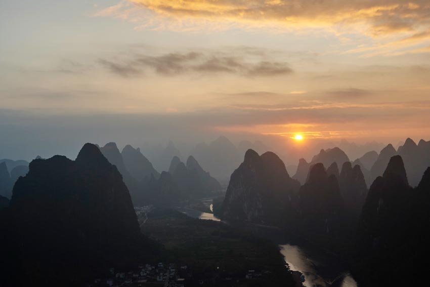Примерно в часе езды на автобусе от Яншо, есть городок Синпин. Сам городок ничего особенного из себя не представляет, но здесь расположен холм, откуда открывается чудесный вид. На фотографии ниже вы найдете его. Когда приедете на автовокзал в Синпин (兴坪汽车站(Xìng píng qìchē zhàn)), покажите местным название холма - 老寨山(Lǎo zhài shān). Пешком от автовокзала до начала ступенек на холм минут десять ходу.