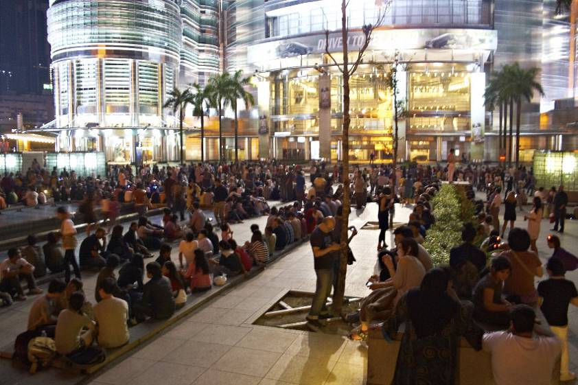 И то и другое лучше посещать в ночное время суток. Мы были на Менаре днем и это было ошибкой. Ночной Куала-Лумпур должно быть не идет ни в какое сравнение с его дневным аналогом, хотя и днем пейзажи заставляли смотреть во все глаза. Вход на смотровую площадку стоит 50 ренгит днем, 100 ренгит ночью, а в Новый Год придется заплатить все 200. Но самое большое впечатление на меня произвели башни Петронас в свете ночных прожекторов. Не раз слышал негативные отзывы от этом грандиозном сооружении, мол, просто здания, ничего особенного. С таким мнением категорически не согласен. Лично для меня Петронасы стали одним из самых ярких моментов за все время, проведенное в Куала-Лумпуре.