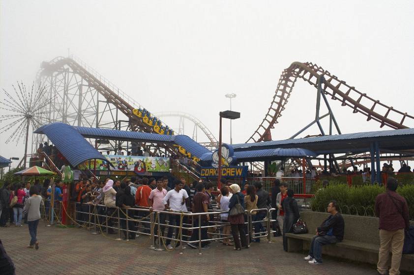 Начнем с парка аттракционов, пользующихся огромной популярностью как у местных жителей, так и у туристов. Если соберетесь в этот малазийский Диснейлэнд, постарайтесь выезжать настолько рано, насколько это возможно. Тем самым вы сэкономите время, поскольку очереди перед входом огромны. Часа два потеряете точно и это только в будний день. О выходных и праздниках говорить вообще не приходится. Парк работает с семи утра, а на дорогу уходит около часа, если отправляться с KL Central.