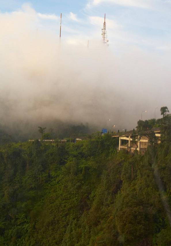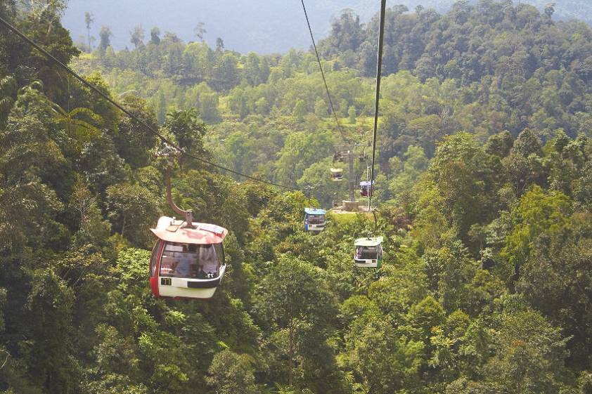 По приезду на место есть два способа добраться до парка: на автобусе и по канатке. Если решили добираться с помощью канатной дороги, есть один момент, который обязательно стоит учесть - это сэкономит немало вашего времени. Дело в том, что когда вы покупаете билет на автобус в KL Central у вас уже есть на руках билет на канатку, так что стоять в первой очереди за билетами не нужно. Сразу проходите к эскалатору, где перед вами, скорее всего, откроется длиннющая очередь к кабинкам. Теперь стоит запастись терпением и ждать когда очередь дойдет и до вас. Вот очередь подошла к своему логическому завершению и вы садитесь в кабинку, направляясь ко входу в парк. Виды, конечно, стоят потерянного времени. На мой взгляд, дорога на Сентозу в Сингапуре или подобная канатная дорога на остров Лантао в Гонконге, более впечатляющие, но для первого раза, это было то что нужно.