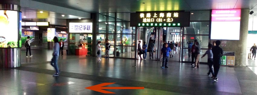 Доезжаем до станции метро Shanghai South Railway Station. Выходим из метро и следуем по указателю на изображении ниже.