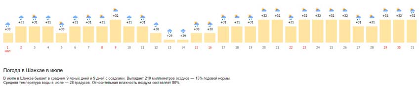 Погода в Шанхае в июле