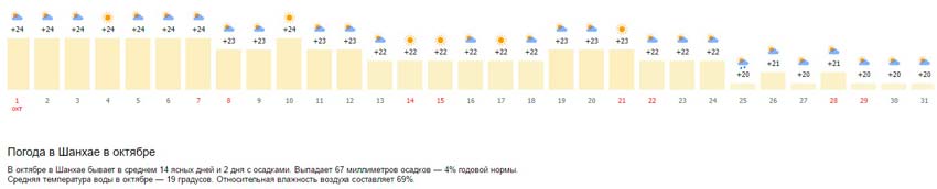 Погода в октябре в Шанхае