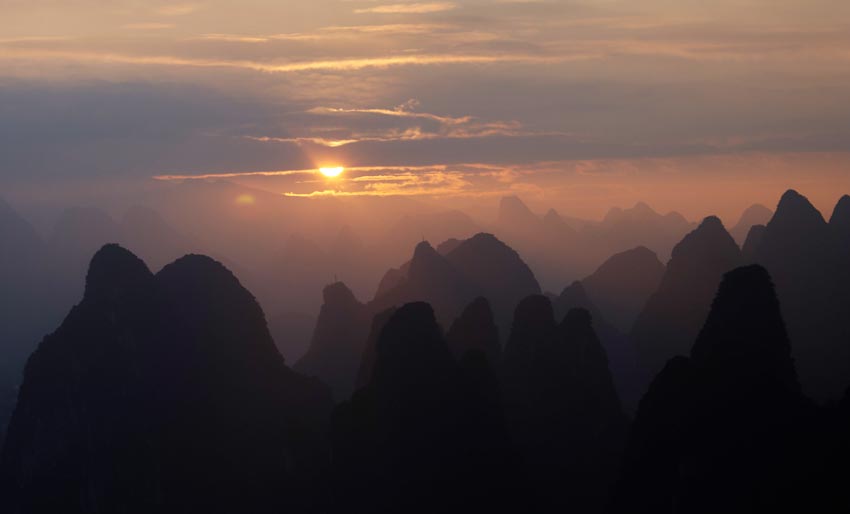 Ниже вы увидите несколько фотографий рассвета. Как добраться до этого места самостоятельно точно не скажу, мы брали экскурсию. Стоила около 100 юаней с человека. Можно выбрать, как встретить закат с обзорной площадки, так и рассвет. Мне показывали фотографии заката и меня не особо впечатлило, cкорее, это место для рассвета. Поскольку солнце не закрыто холмами, в отличии от заката, именно на рассвете можно сделать хорошие снимки. Уточните в вашем хостеле детали, вам все расскажут. Экскурсия начинается в 4.30 утра, когда вас забирают из хостела.