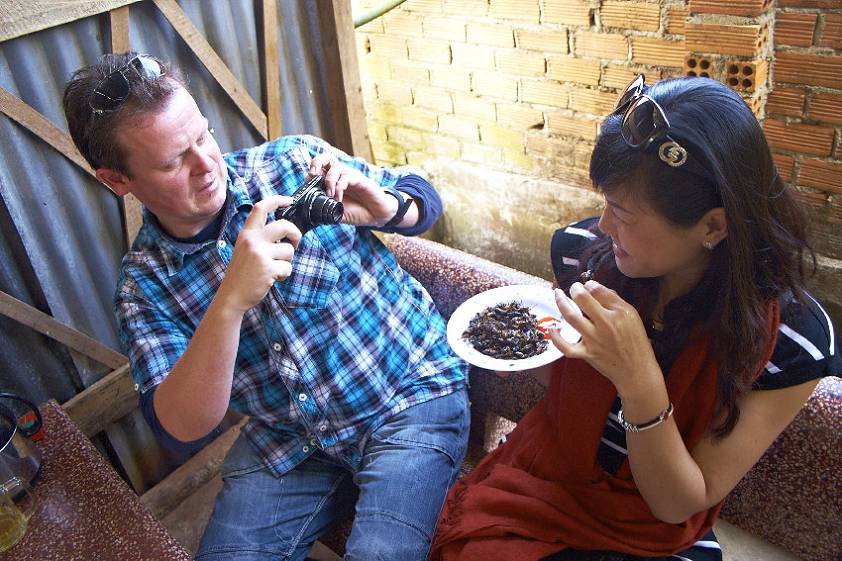 Далее обед, а правильнее сказать, перекус. Нет, рис с курицей или лапша сегодня в нашем рационе отсутствуют. Мы едем на небольшую ферму по разведению сверчков, где нам предлагают целую тарелку этих не миловидных насекомых. Как сказала наш гид: “Самые крупные, самые вкусные” – поверил ей на слово. Теперь могу всем рассказывать, что пробовал сверчков. На вкус, как будто горсть семечек съел, есть можно.