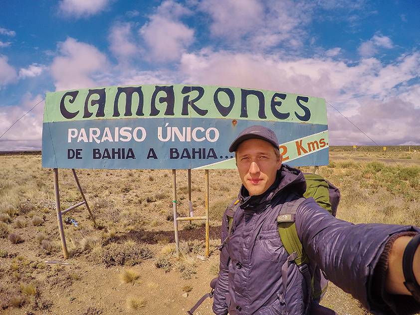 Камаронес место до которого еще нужно доехать. Находится на отшибе, в стороне от самой оживленной в Аргентине трассы Ruta 3, машин практически нет, да и те подбирают с неохотой. Так или иначе, приехал сюда на пингвинов посмотреть, да себя показать.
