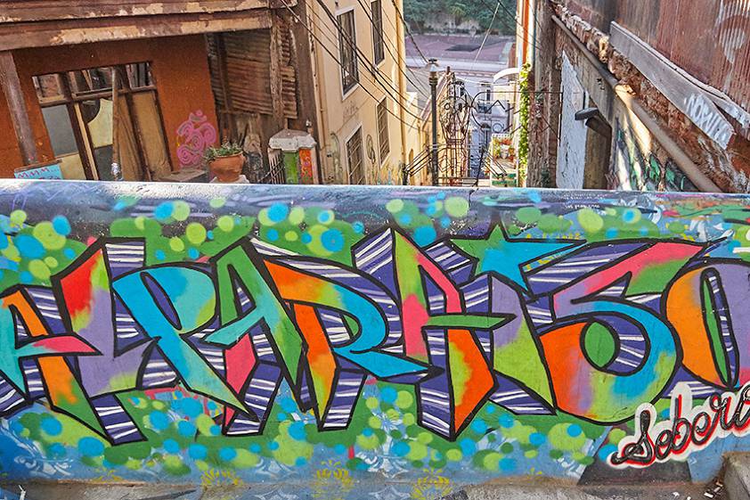 Про чилийский город Вальпараисо, что аккуратно расположился на берегу Тихого океана, слышал уже давно и очень хотел в нем побывать. Тот случай, когда ожидания были вознаграждены и место оказалось просто потрясающим. Без преувеличения, Вальпараисо одно из самых интересных мест для меня, если покопаться в памяти и вспомнить увиденное в Южной Америке. Особенно поразило уличное творчество в виде графити, а также удивительная и свободная атмосфера города.